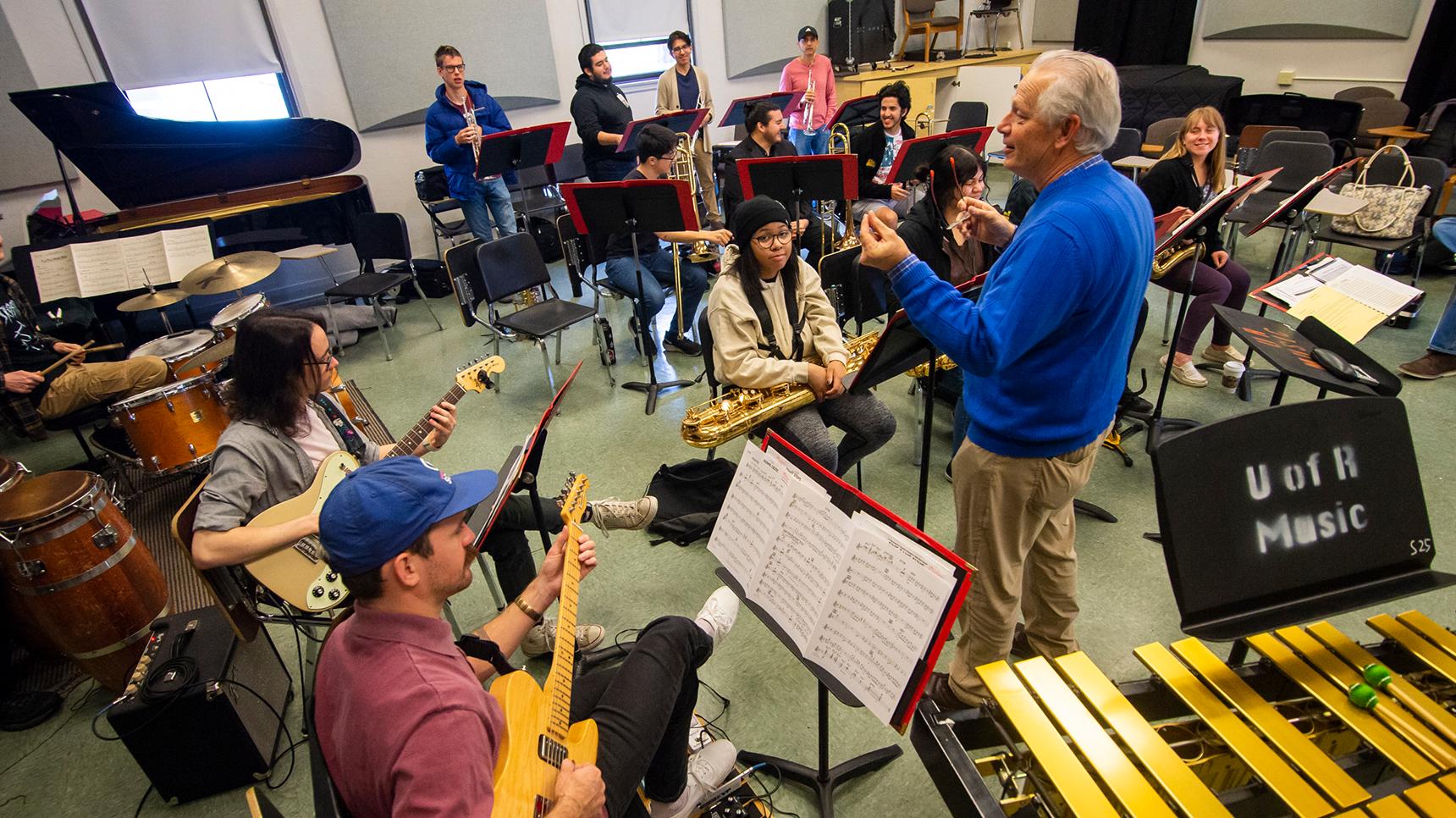 The most distinctive aspect of our program is the opportunity students have to hear their works performed live by ensembles both large and small. In addition to the Green Orange concert each semester (a student-produced chamber music concert of all new works by Redlands composers), undergraduate student works are regularly programmed by the major ensembles. The University Orchestra, Wind Ensemble, Brass Ensemble, Chapel Singers, University Choir, Rhythm Ave Singers, Studio Jazz Band, and Percussion Ensemble all perform student works on their regularly scheduled concerts. This is extraordinarily rare; there are no other programs in composition that offer undergraduate students these kinds of opportunities to have major works performed and recorded on large ensemble concerts.