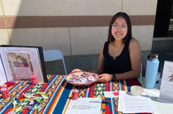 Members of the Native American Student Union (NASU) thanked the event’s speakers and attendees for their participation. Leading up to the screening, NASU distributed information about the MMIW movement to passersby in Hunsaker Plaza to raise awareness on campus.
