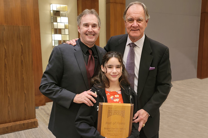He recently attended the NAIA ceremony in San Antonio alongside his 13-year-old daughter, Shianne. Fellow Redlands High School alumnus and former U of R and Baltimore Ravens coach Brian Billick presented DeRoo with his celebratory plaque; the pair caught up during a game of golf after the ceremony while Cheyenne drove the cart.