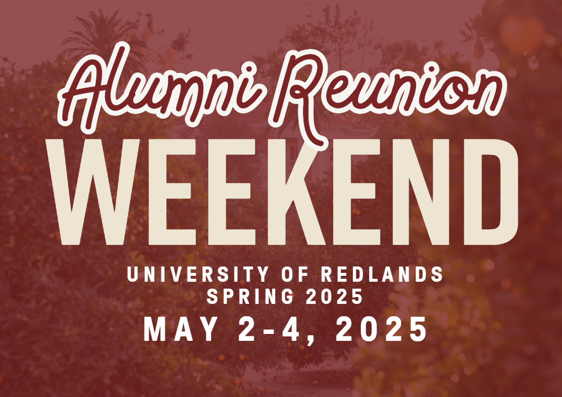 The University of Redlands Alumni Reunion Weekend 2025 will take place May 2-4, 2025 at Redlands main campus.