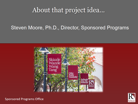Brainstorm a project idea! Use this form to submit a project idea to the Sponsored Programs Office (University of Redlands login required).