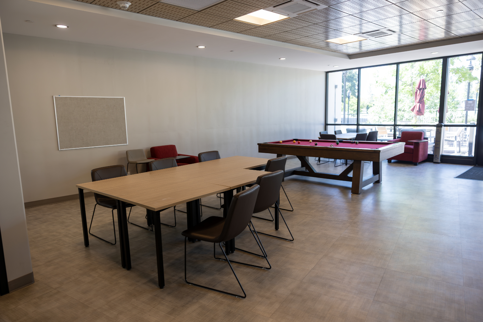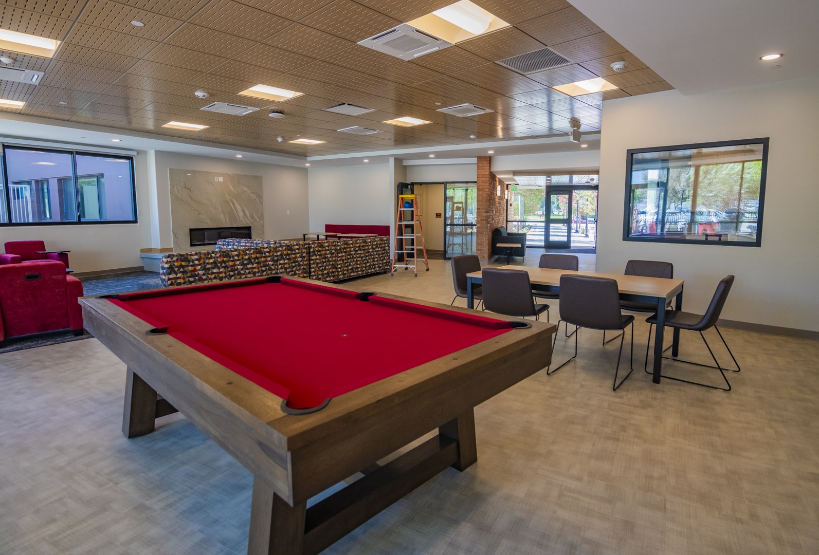 Anderson Hall is newly renovated and the largest residence hall on campus housing over 200 students on the corner of Brockton Avenue and University Avenue. There are two kitchens (equipped with a stove, oven, microwave, sink, and refrigerator), ping pong table, pool table, large televisions, bicycle racks, handicap accessibility, and outdoor seating are among the new features along with air conditioning.