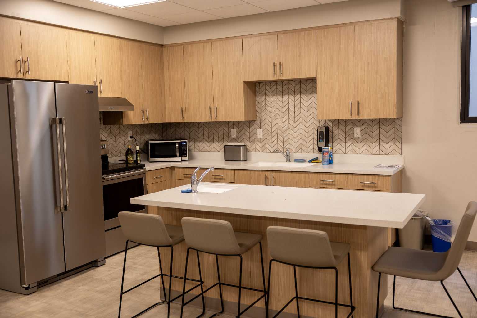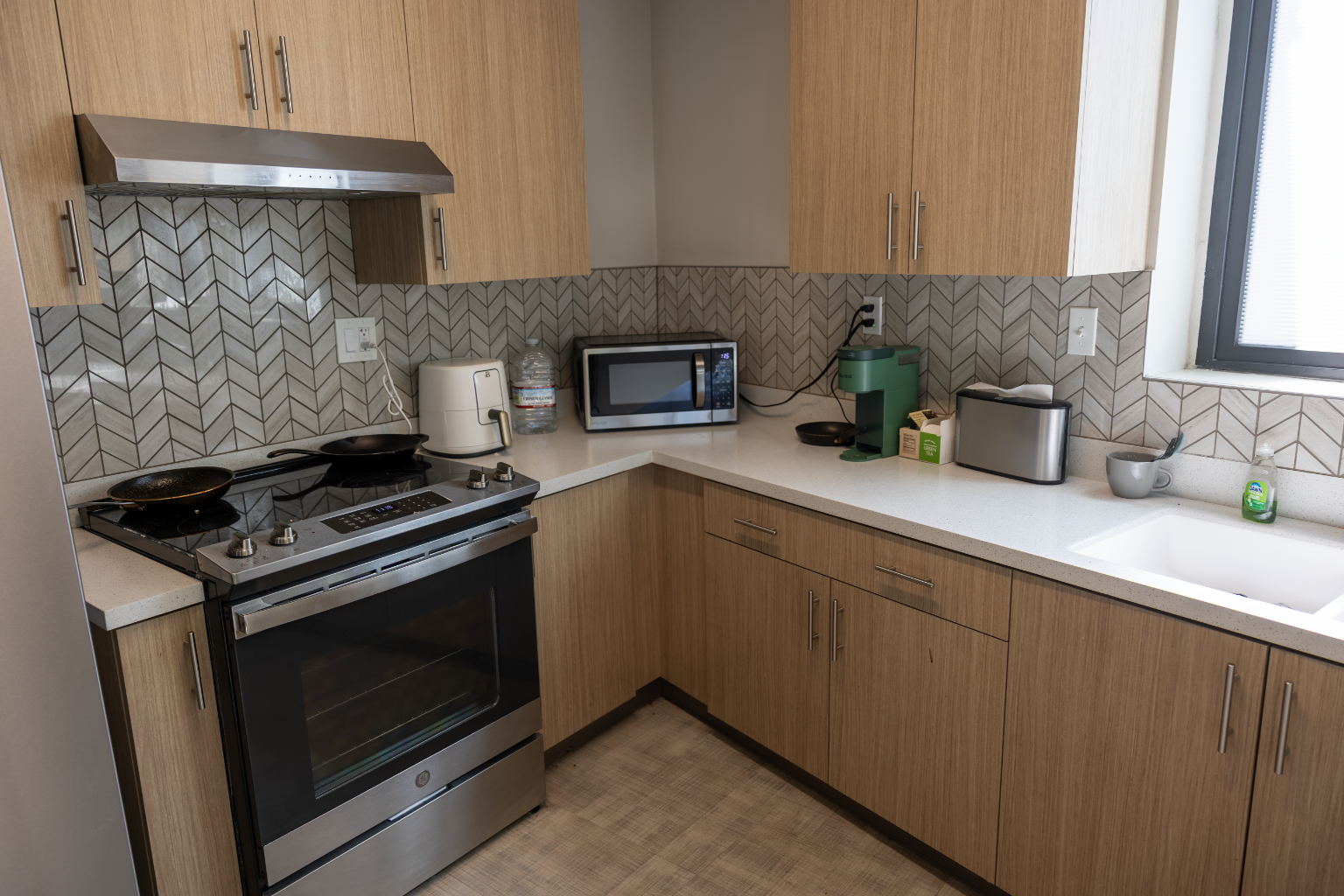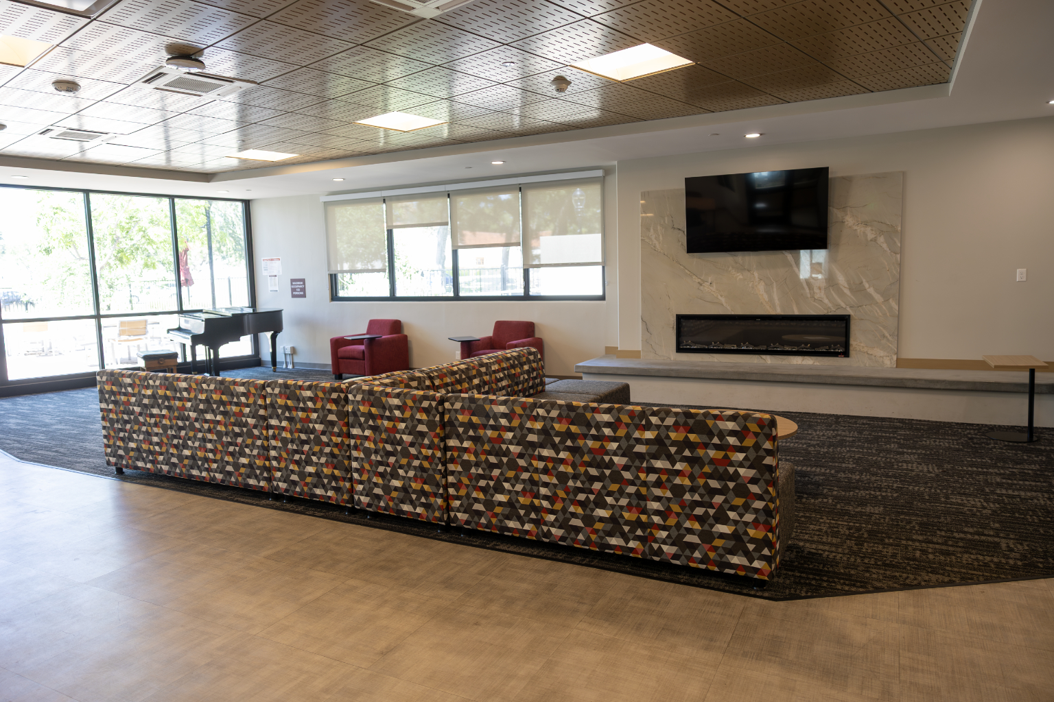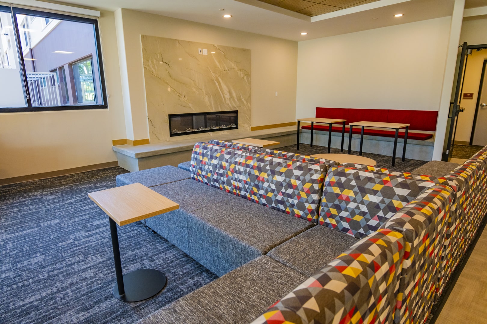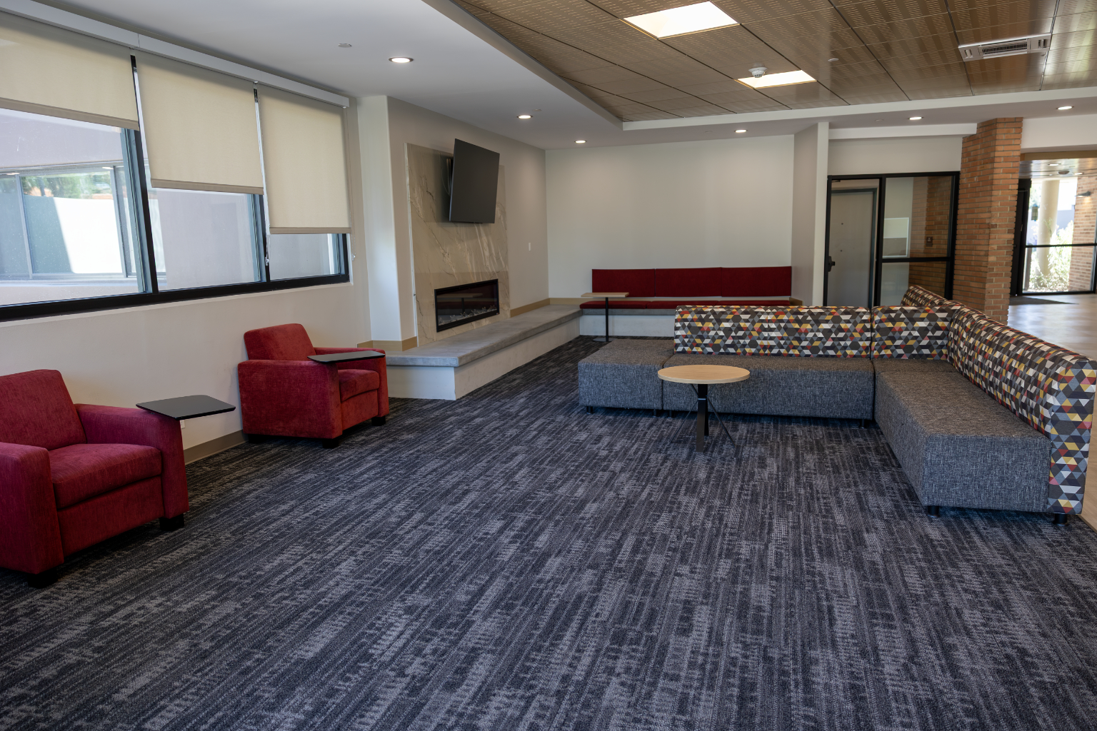 Features: New carpet, insulated windows, doors, bathroom floor tile, drywall, paint, furniture, heating, suite-style bathrooms, and air-conditioning. Each occupant has a desk, chair, elevated bed, drawers and closet