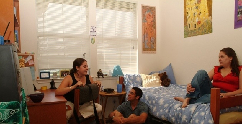 Rooms have limited outlets so residents are encouraged to pack a power strip. Command or 3M strips are recommended for hanging items on the wall versus nails or tape. Other recommended items include extra long bedding, blankets, basic cleaning supplies, kitchen utensils, desk lamp, TV, shower supplies, hangars, and all basic essentials. Residents are encouraged to leave pets, microwaves, mini fridge, air conditioners, halogen lamps, cinder blocks, firearms, nails, tacks, and incense or candles at home.