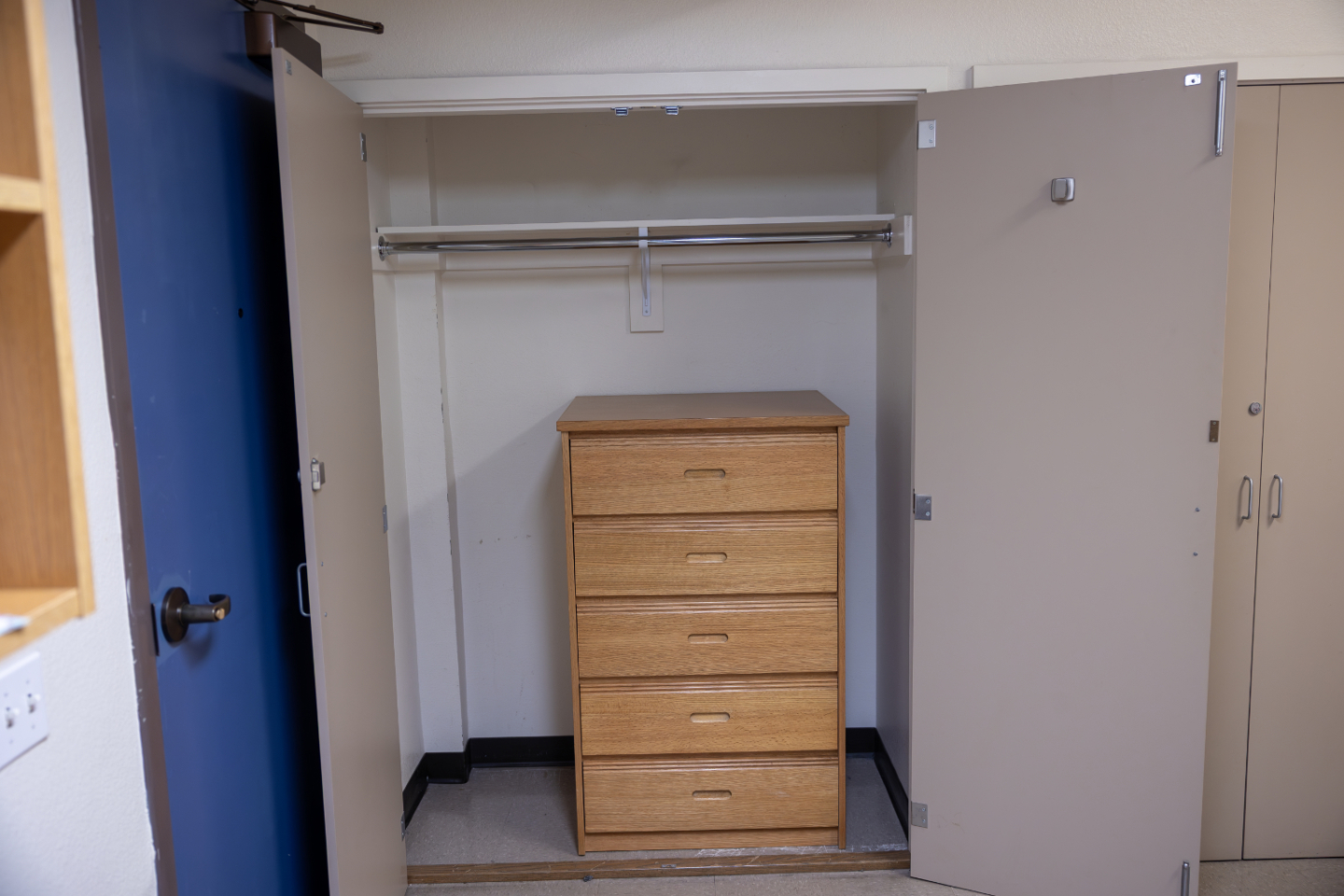 Rooms have limited outlets so residents are encouraged to pack a power strip. Command or 3M strips are recommended for hanging items on the wall versus nails or tape. Other recommended items include extra long bedding, blankets, basic cleaning supplies, desk lamp, mini fridge, TV, shower supplies, hangars, and all basic essentials. Residents are encouraged to leave pets, microwaves, air conditioners, halogen lamps, cinder blocks, firearms, nails, tacks, and incense or candles at home.