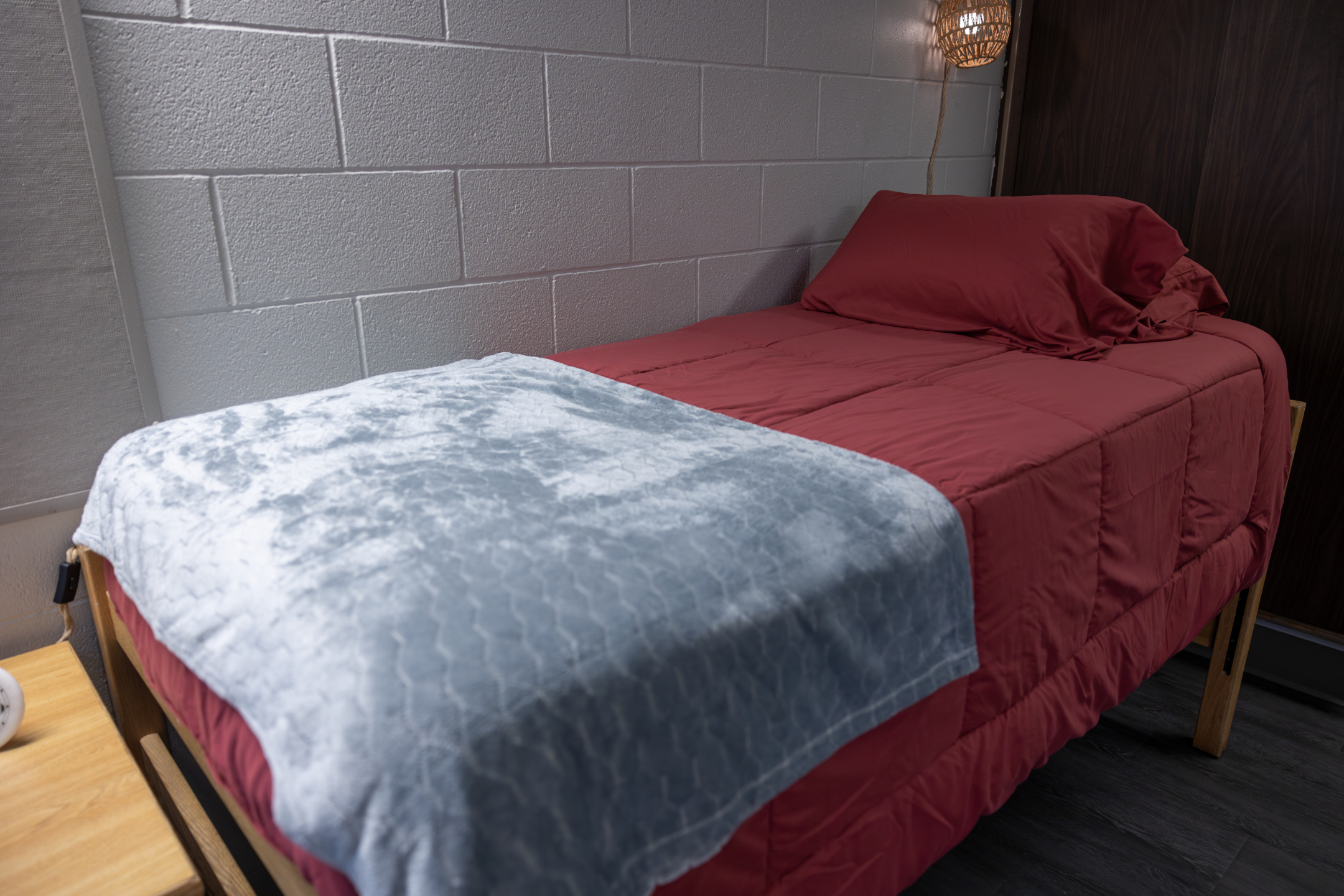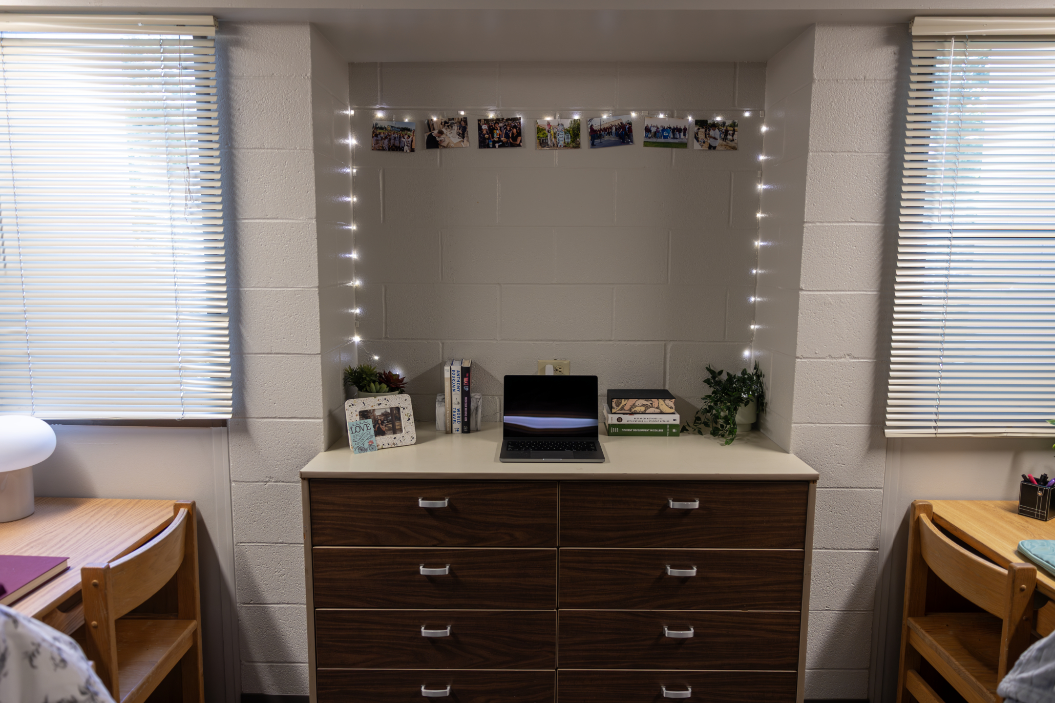 The hall also offers air-conditioning and hallway bathrooms for roughly 140 residents. A smoke free environment is the standard on-campus while this hall is a three-story building with gender inclusivity. Rooms have limited outlets so residents are encouraged to pack a power strip. Command or 3M strips are recommended for hanging items on the wall versus nails or tape. Other recommended items include extra long bedding, blankets, basic cleaning supplies, desk lamp, mini fridge, TV, shower supplies, hangars, and all basic essentials. Residents are encouraged to leave pets, microwaves, air conditioners, halogen lamps, cinder blocks, firearms, nails, tacks, and incense or candles at home.