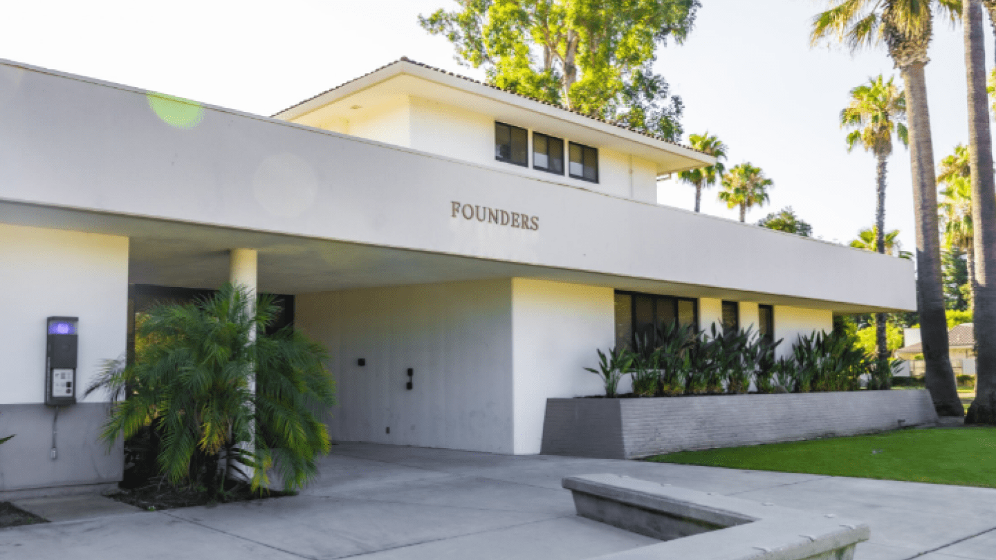 California and Founders Halls are two buildings joined together by a common lobby and kitchen (equipped with a stove, oven, microwave, sink, and refrigerator). Both are air-conditioned and centrally located on campus surrounded by beautiful greenery and near Colton Avenue. Founders houses female-identified students while both aim to provide students with ways to connect to the community and get involved. Founders Hall serves roughly 90 residents in a three-story building while providing a smoke free environment.