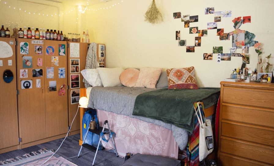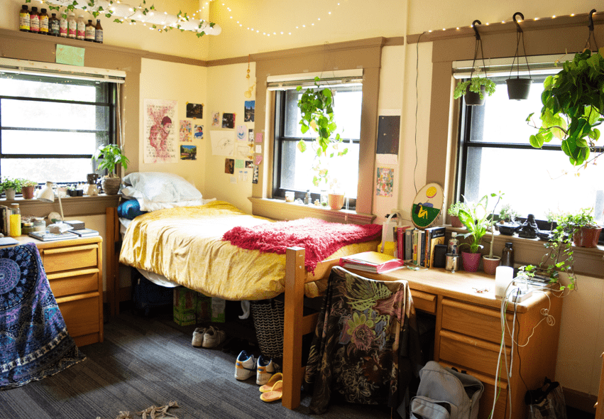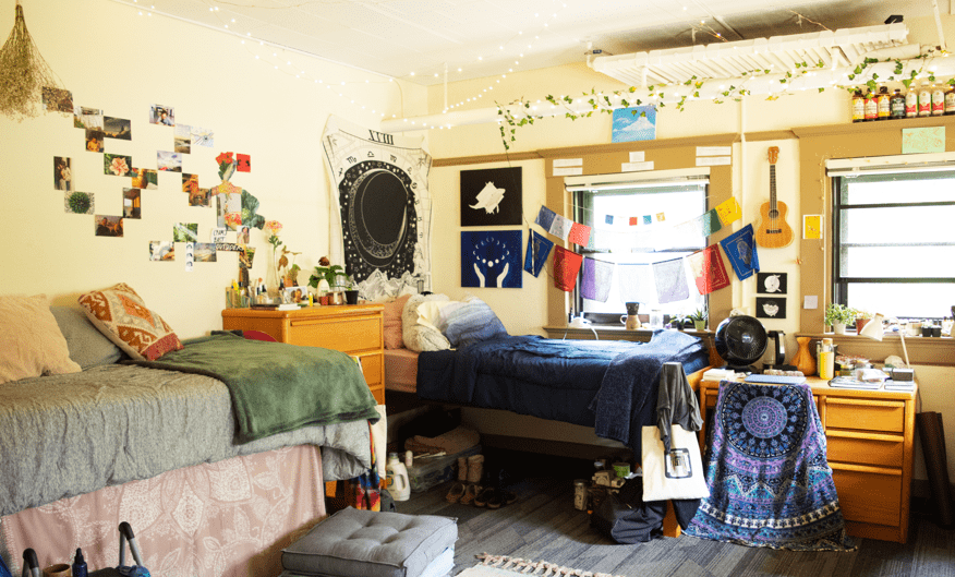 Rooms have limited outlets so residents are encouraged to pack a power strip. Command or 3M strips are recommended for hanging items on the wall versus nails or tape. Other recommended items include extra long bedding, blankets, basic cleaning supplies, desk lamp, mini fridge, TV, shower supplies, hangars, and all basic essentials. Residents are encouraged to leave pets, microwaves, air conditioners, halogen lamps, cinder blocks, firearms, nails, tacks, and incense or candles at home.